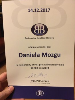 V podnikání zastává Daniel Mozga názor, že na odbornou práci je potřeba mít odborníka. I proto se před dvěma a půl lety rozhodl stát se členem podnikatelského klubu Business for Breakfast v Ostravě. Právě tam se to odborníky v různých oblastech jen hemží. Jak ale sám přiznává, prosadit se v jakékoli branži je v dnešní době složité. A právě proto je třeba budovat dlouhodobé vztahy, získávat doporučení a díky nim i nové zakázky.